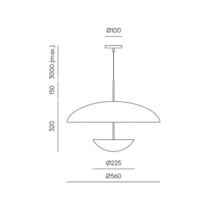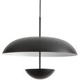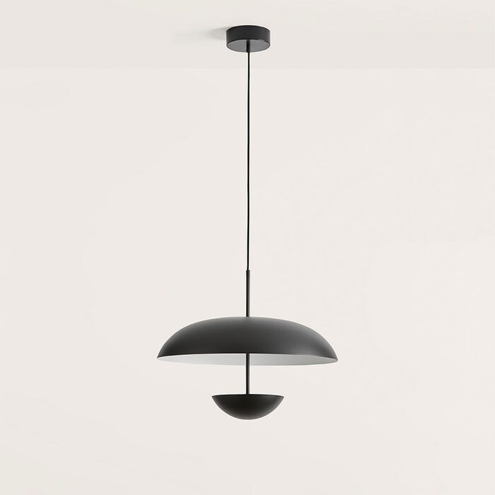 Ella Pendant Light designed by AC Studio for Aromas Del Campo is a minimal indoor light fixture featuring a large shade in a matte black exterior and a matte white interior.