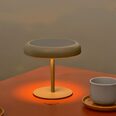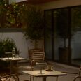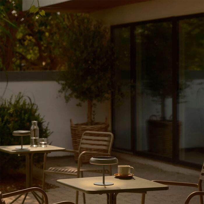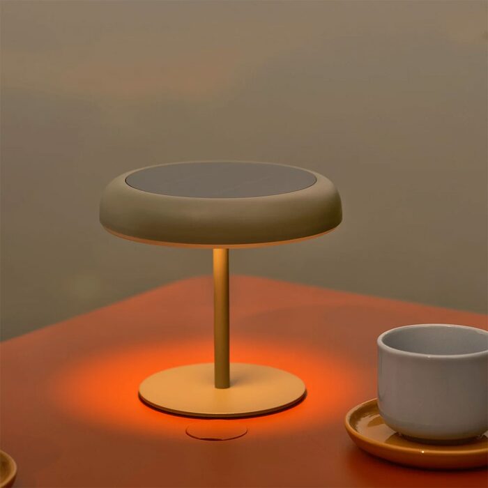 It charges using sunlight during the day and features three dimming settings to create the perfect ambiance.