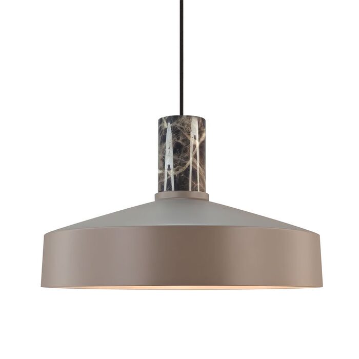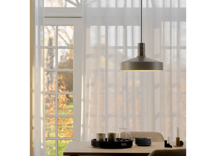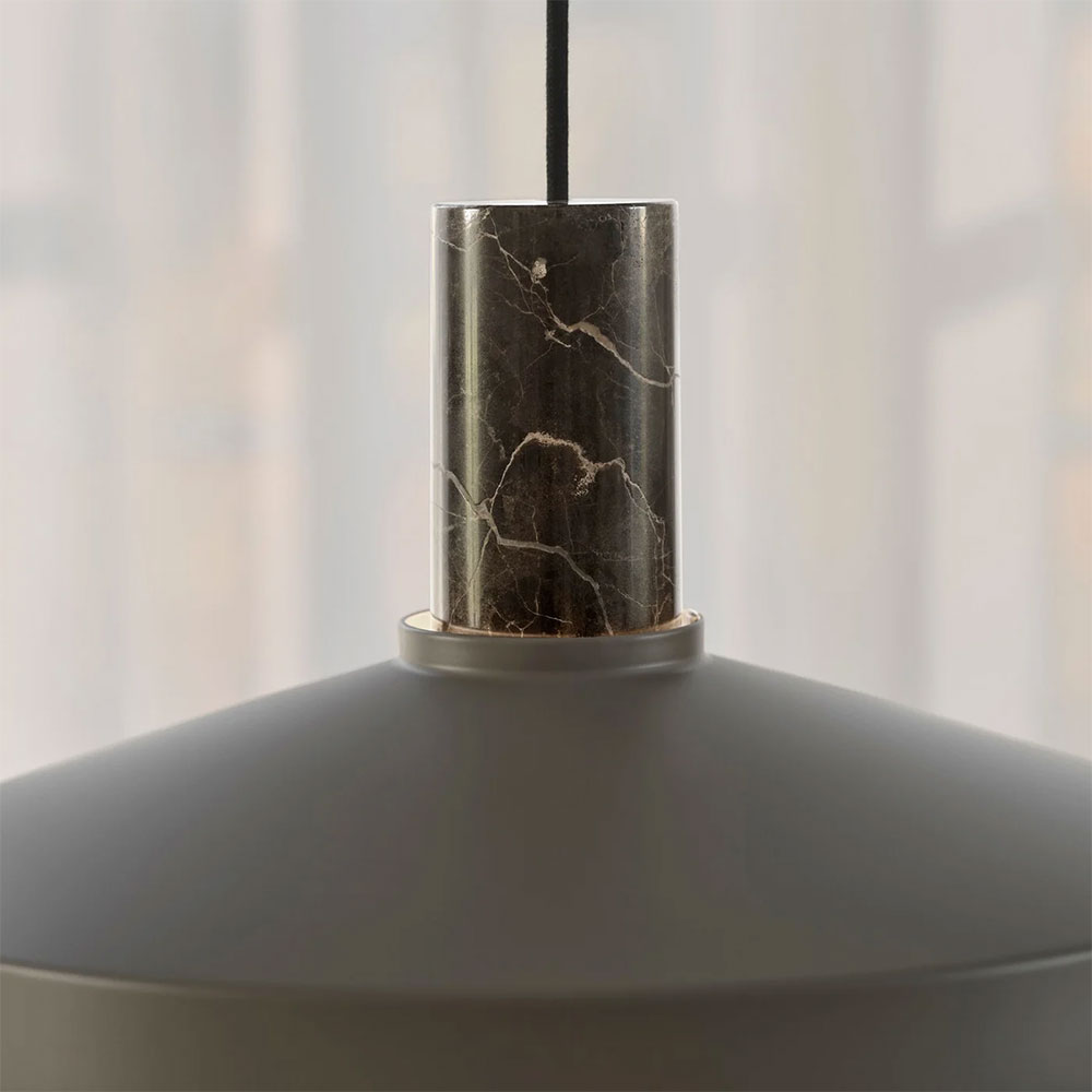 The Elvas pendant has a modern and minimalistic design with a metal shade that is complemented by the elegant marble suspension.
