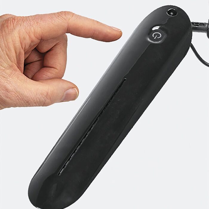 Metal frame construction with ABS head. Complete with G-Clamp and plug in power supply.