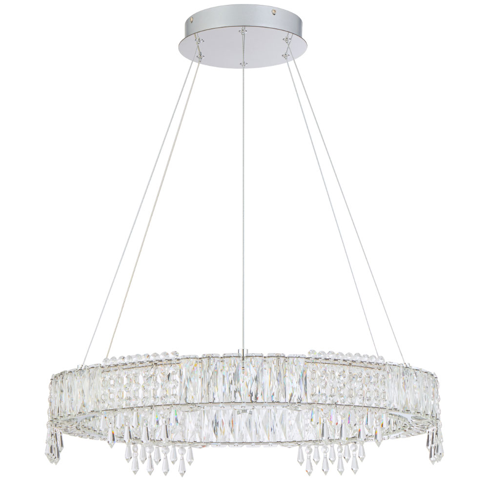 Each fitting includes integrated LED technology with 3CCT selection, remote dimming, and is designed for indoor spaces where refined sparkle and modern elegance are desired.