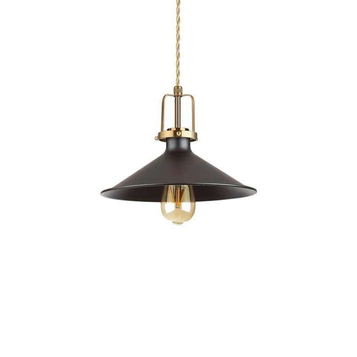 Metal frame with rosette and diffuser painted matt white or black, details in satin gold finish. Braided electrical cable with fabric covering.