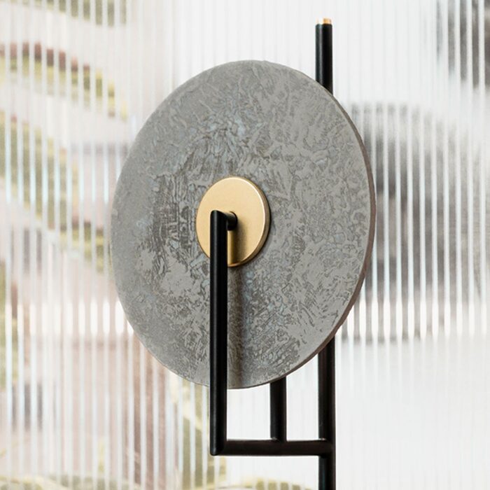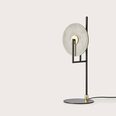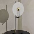 Discover the Erto table lamp with its minimalist, contemporary style. This refined piece features a steel structure that plays with the combination of black and gold, an alabaster disc diffuser that creates a warm ambience and an energy-saving LED bulb.