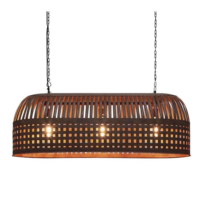 Esch features individual lengths of iron strips that are woven together and held in place by rivets, suspended beneath a graceful dome.