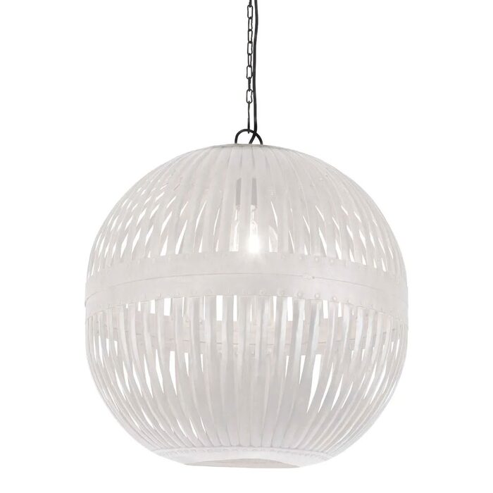 Esch features individual lengths of iron strips that are woven together and held in place by rivets, suspended beneath a graceful dome.