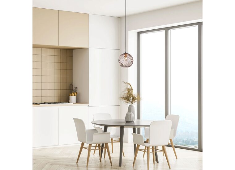 Its subtle texture and smoky hue create soft ambient lighting ideal for dining areas, living rooms, or bedrooms.