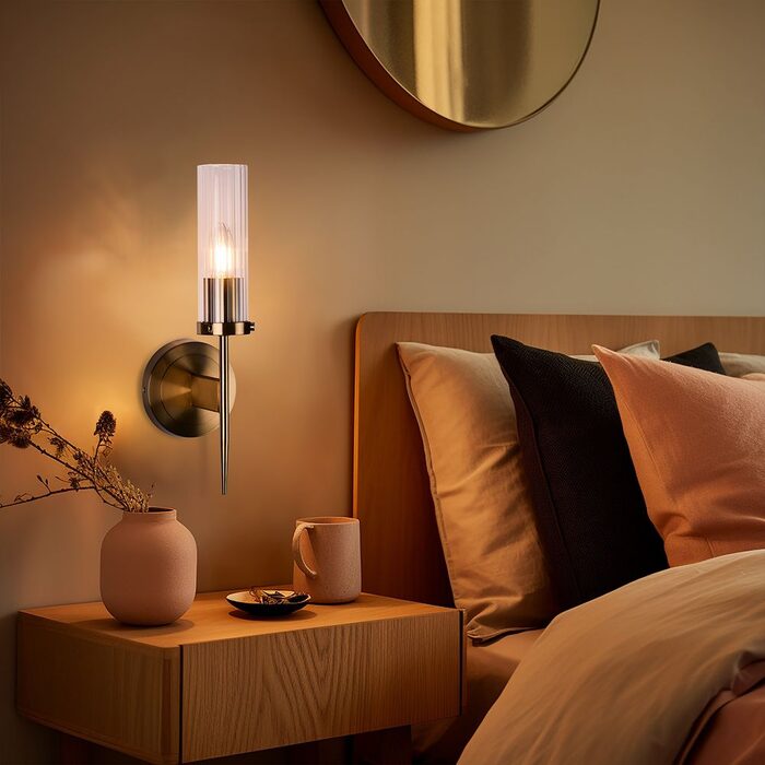 Experience sophistication with Eternal 39.5cm Fluted Glass & Satin Brass Vanity Light!