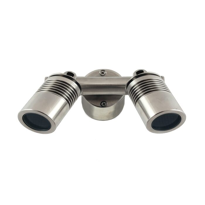 The Euro Twin Wall Spot is a wall-mounted luminaire with two fully adjustable heads, each allowing 360 degree rotation and 090 degree elevation.