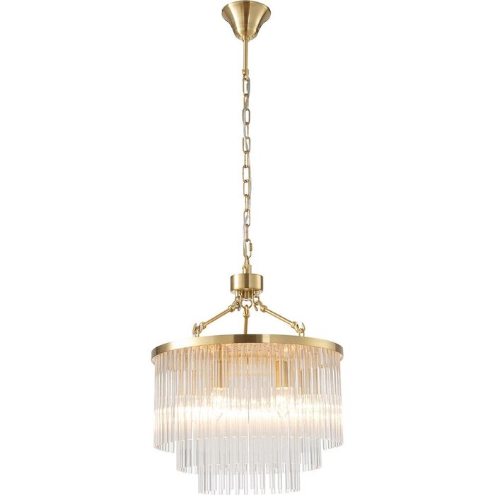 Elegant and eye-catching, the Evangeline 45cm Chandelier Satin Brass range brings modern glamour to any space.