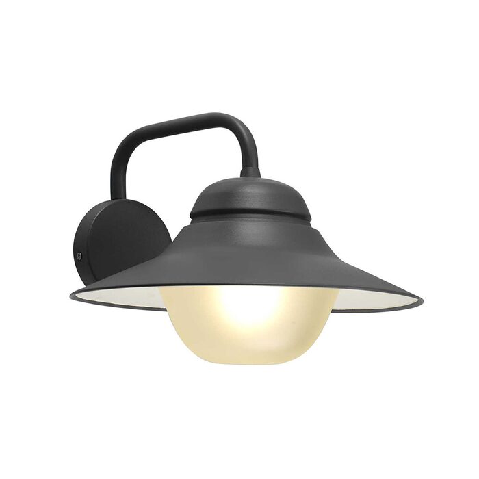 Wall light for outdoor use with aluminium die-casting in black or white colour.
