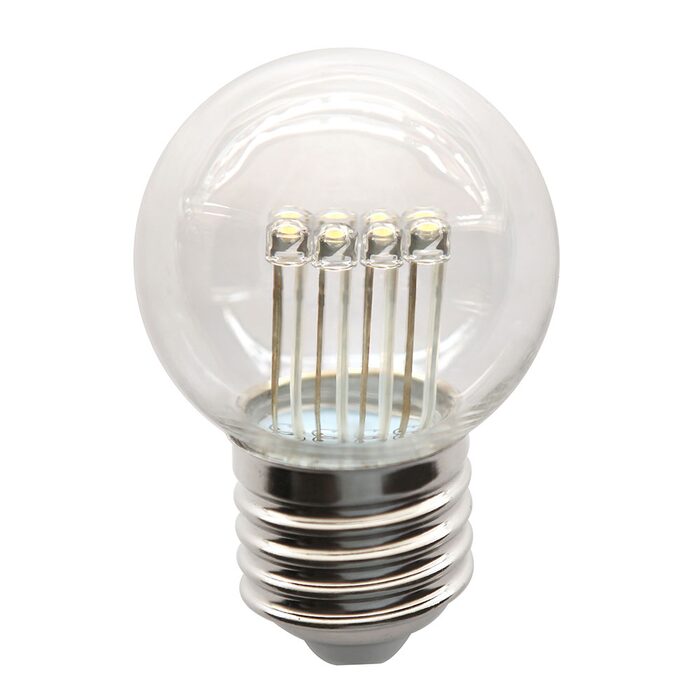 The mains voltage 240V 1W Small Round Clear LED Festoon Light Globe will provide a wonderful warm ambient light with their 8 individual LED’s providing a very warm 3000k light colour.
