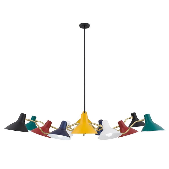 The subtle curves and clean lines reflect the informal hip and trendy classic style. Presented in black, white or multi-color with a brass matt flexi-arm for the control of directional light.