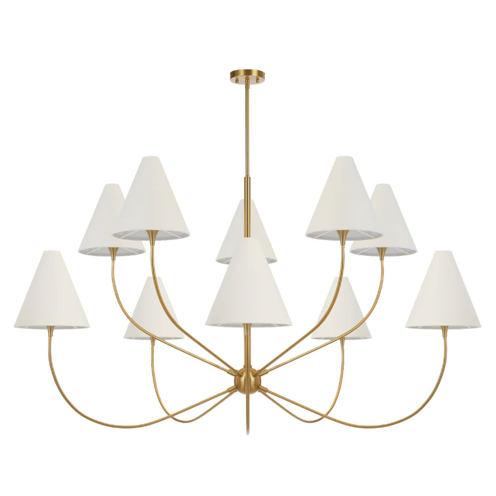 Featuring gently curved arms and tapered fabric shades, these pendants and wall lights create a soft, inviting glow.