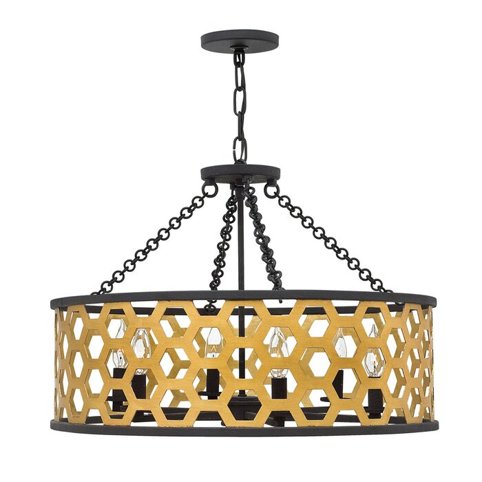 Felix features a bold honeycomb, hexagonal pattern of laser cut steel in a winning combination of Sunset Gold and Textured Black, offered in a variety of sleek cylindrical shapes for stunning visual impact.