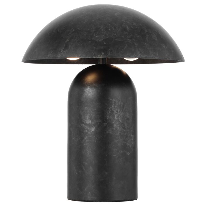 Crafted from iron and adorned with a distinct patina finish, these lamps boast a striking dome shape and fluid curved lines.