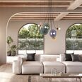 Fest wants to convey that sophistication can be sweet and casual, and that organic shapes bring comfort to all environments. The Fest chandelier originally comes with clear glass discs in pink, dark blue and turquoise.