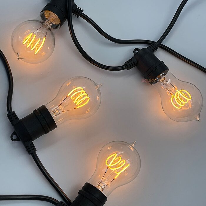 Festoon lighting is a dynamic outdoor and indoor party décor light string featuring a vintage look and feel. Festoon lights indoor or outdoors string comes with 10 x 4W GLS Quad Loop light bulbs.