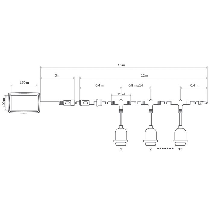 This weather-proof IP65 rated 15-meter solar-power festoon string light is perfect for indoor and outdoor parties and celebrations that require a cosy atmosphere—in any weather.