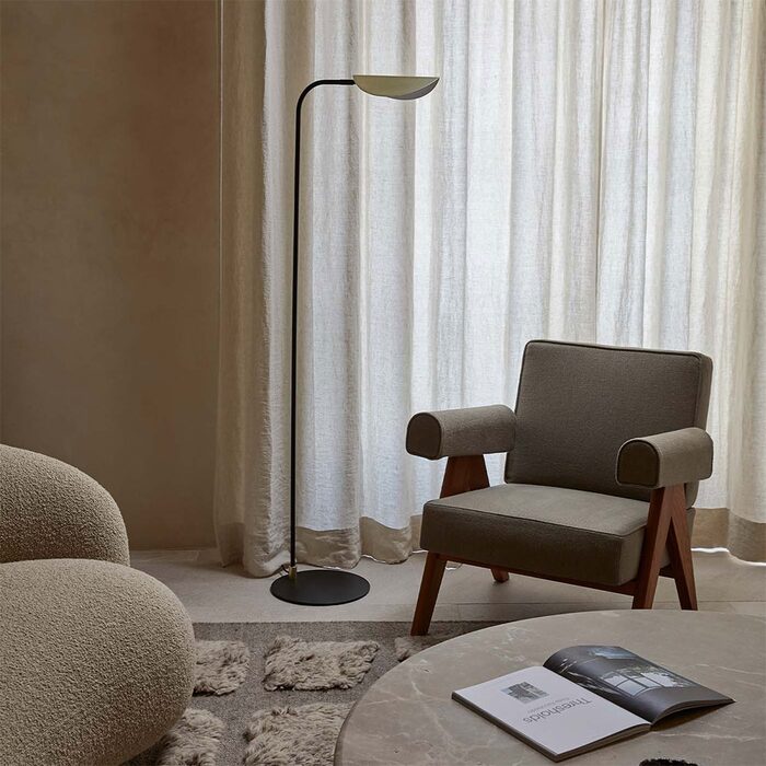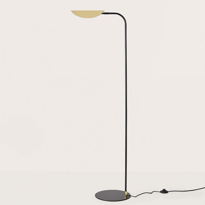 Ficus features a sleek structure and base that leads towards a matte brass shade reminiscent of the large and bright leaves of the Asian Ficus plant. An ideal indoor floor lamp for a contemporary home.