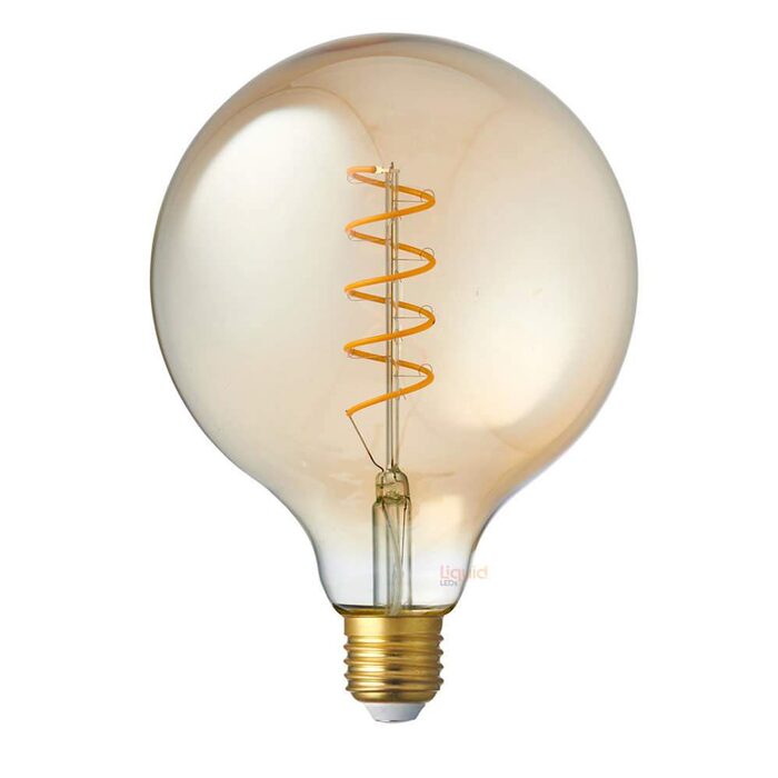 This 4 Watt Vintage G125 Dimmable Spiral LED Filament Amber Glass Light Bulb features an elegant vintage Large Globe design accompanied by cutting-edge LED Technology. The result is a modern light bulb that evokes the nostalgia of the early incandescent lamps of the Gilded Age (this Amber Glass edition really delivers that rich, warm glow). Best for fixtures with clear glass shades or simply unadorned, this bulb adds an old-time charm to any room coupled with unparalleled energy efficiency and safety (no harmful substances like mercury).