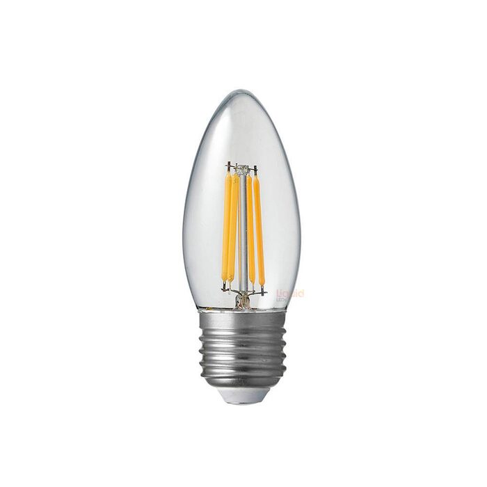 Featuring an elegant, candle-shaped profile, the 4-watt Clear Candle LED Filament Bulb (E27/Edison Screw) is dimmable and its the ideal lighting solution for decorative lighting situations, best used with chandeliers, wall-mounted lamps, and candelabras.