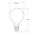 The 4-watt Fancy Round Clear LED Filament (E12) features LiquidLEDs special LED filament technology, inspired once again by classic light bulb design. Instead of a tungsten filament, this device has numerous LED filament, arranged to ensure a 360-degree glow. With its clear finish, the Fancy Round LED Filament bulb is perfect for areas that require warm and attractive illumination.