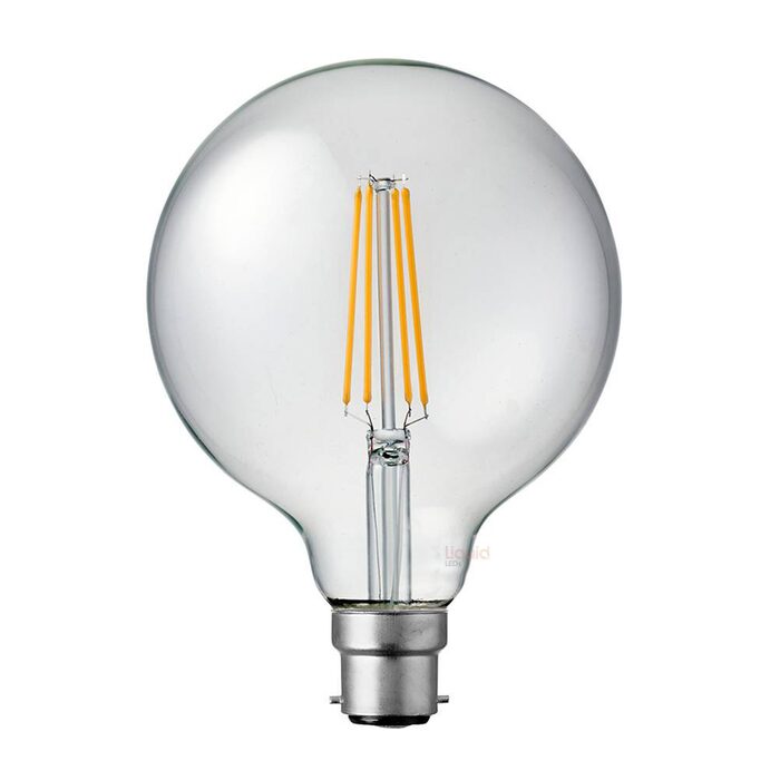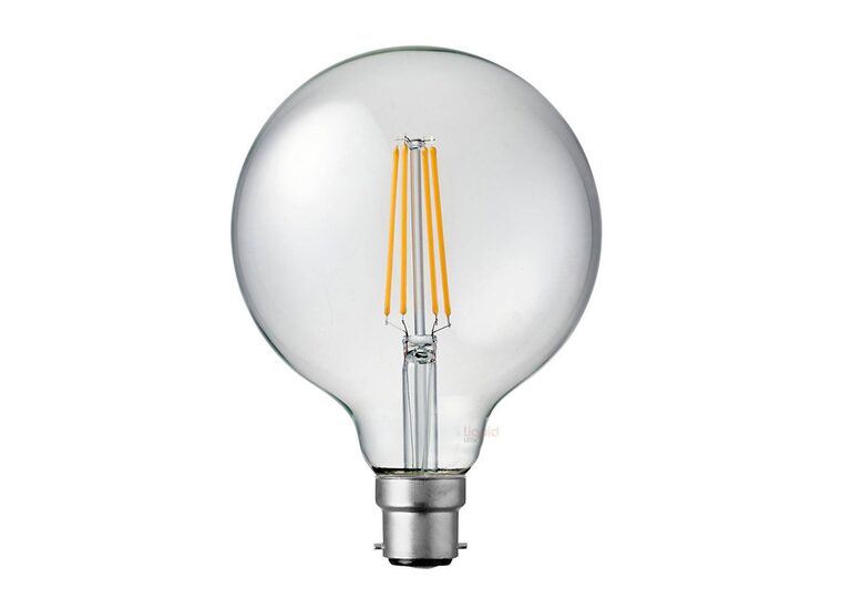Other features of the 8-Watt G125 LED Filament Light Globe (B22) include a 360° beam spread, dimming compatibility, CRI 90 and an average rated lifespan of well over 25,000 hours.