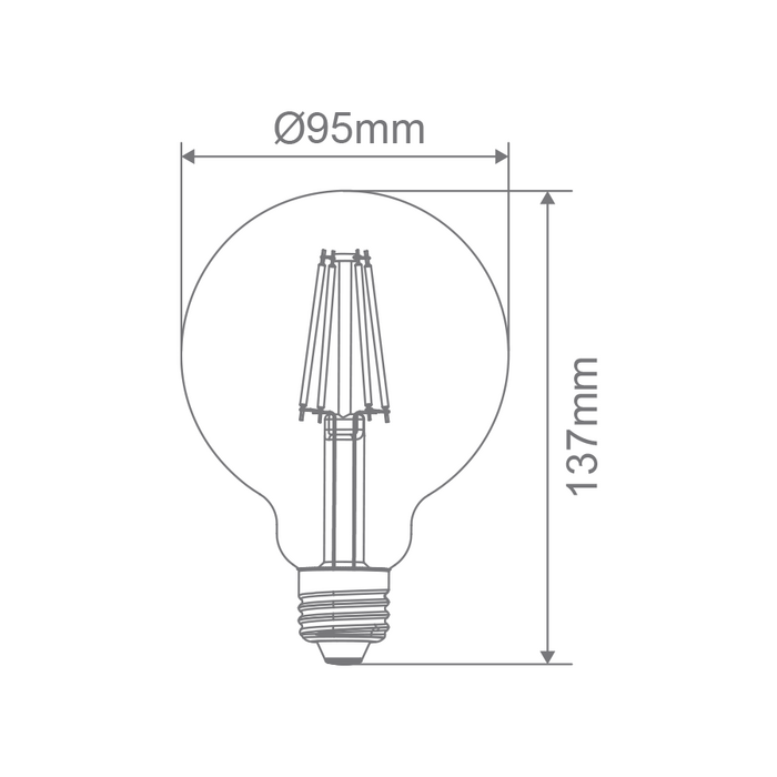 7.5W spherical classic vintage globe, G95 shape. Available in ES (E27) and BC (B22) base options.
