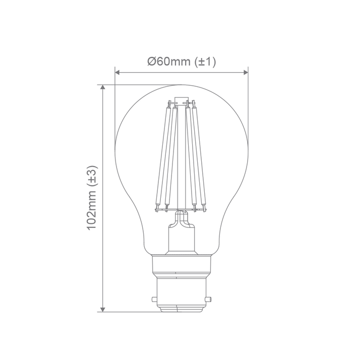 8.6W Standard household globe, GLS shape. Available in ES (E27) and BC (B22) base options.