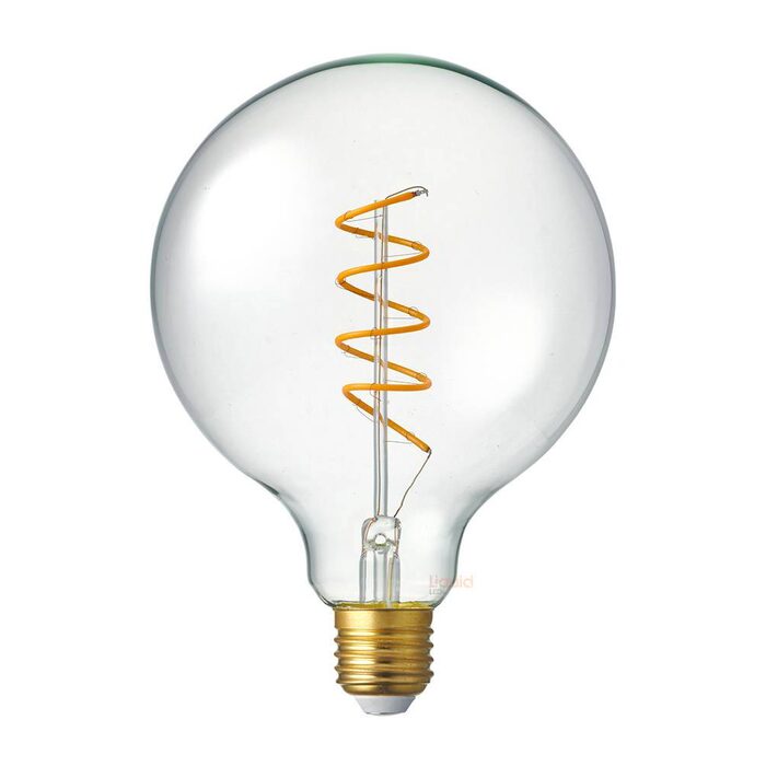 The 4 Watt Vintage G125 Spiral Dimmable LED Filament Bulb features an elegant vintage Large Globe design with cutting-edge LED Technology. The result is a modern light bulb that brings back the nostalgia of the early incandescent lamps of the Gilded Age. Best for fixtures with clear glass shades or simply unadorned, this bulb adds an old-time charm to any room coupled with unparalleled energy efficiency and safety (no harmful substances like mercury).