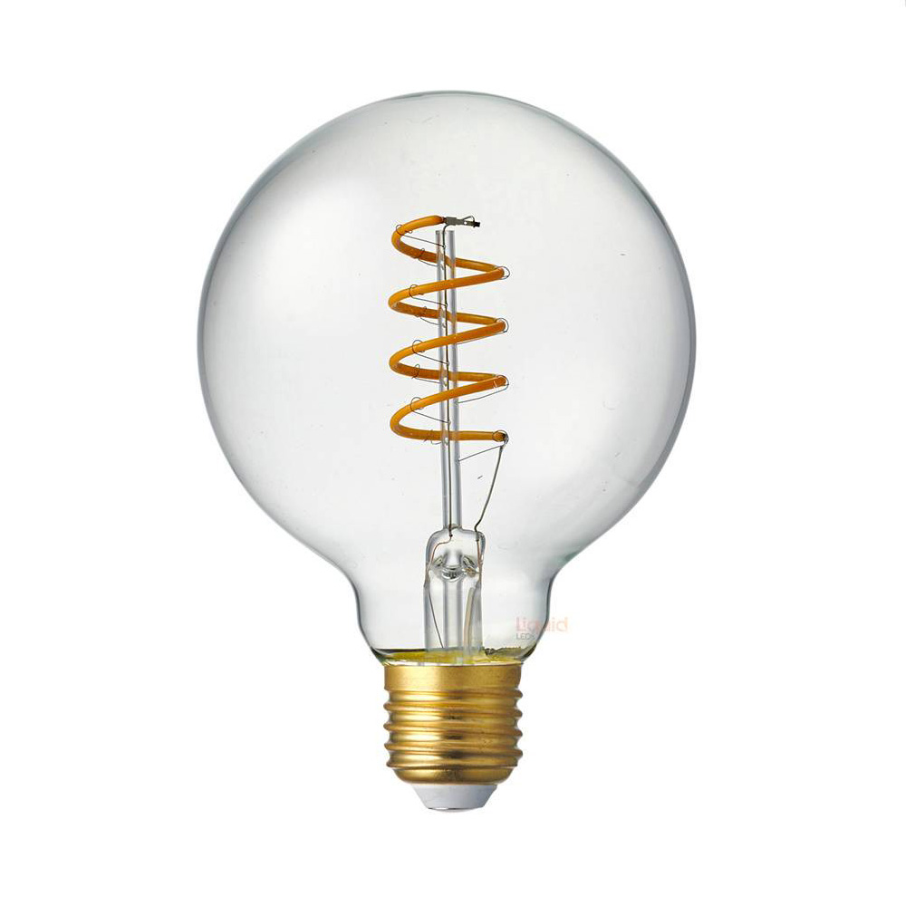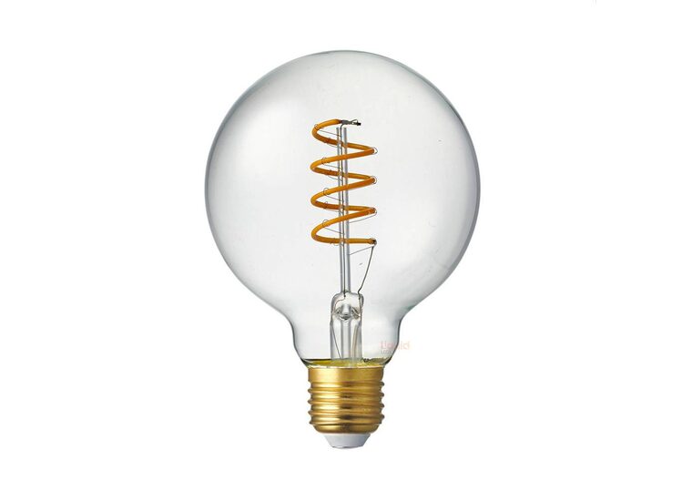 The 4 Watt Vintage G95 Spiral Dimmable LED Filament Light Bulb features an elegant vintage Medium Globe design but packing cutting-edge LED Technology. The result is a modern light bulb that brings back the nostalgia of the early incandescent lamps of the Gilded Age. Best for decorative hanging lamps and fixtures where the bulb can be seen to advantage, this bulb adds an old-time charm to any room coupled with unparalleled energy efficiency and safety (no harmful substances like mercury).