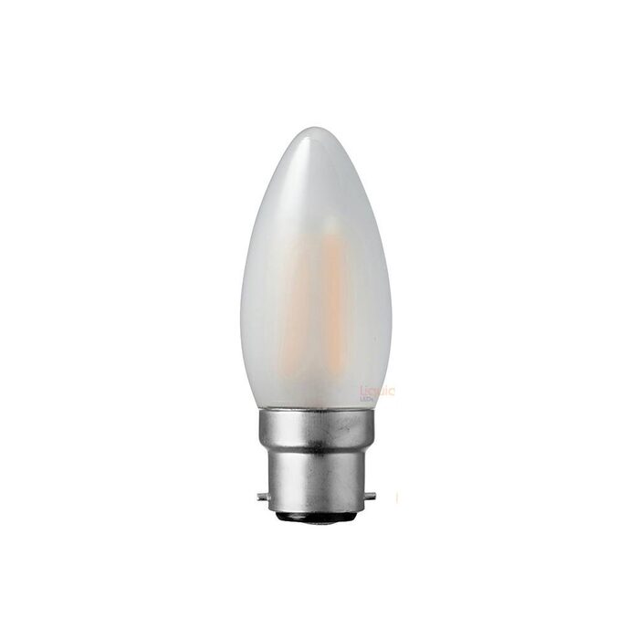 The 2-Watt Candle Frosted LED Filament light bulb (B22/Bayonet Cap) has other strengths that involve its superb energy efficiency and its dimmable. This LED bulb generates 200 lumens of light for just 2 watts of electricity, giving you better performance compared to a standard 25-watt incandescent.