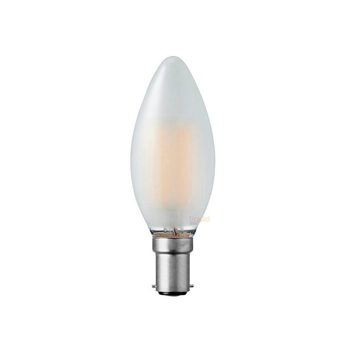 The 4-Watt Frosted Candle LED Filament Bulb (B15/Small Bayonet Cap) features a slender candle-like shape, designed to blend in with the elegant designs of chandeliers and enhance their aesthetic appeal, even when switched off. Using the 4-Watt Frosted Candle LED Filament bulb in conjunction with other bulbs of its kind produces a dazzlingly bright light, perfect for intimate spaces such as living and dining rooms.