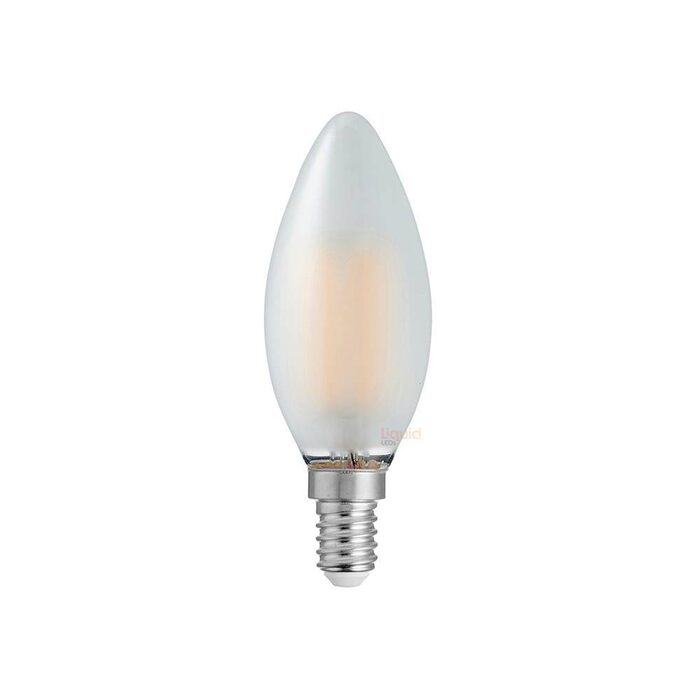 Featuring an elegant frosted finish on its candle-shaped enclosure, the 4-Watt Candle Frosted LED Filament light bulb in Natural White 4000 Kelvin (E14/Small Edison Screw) is designed as a power-saving lighting solution for decorative and general lighting applications. Engineered to be equivalent to the traditional 40-watt incandescent light bulb, the Candle Frosted LED Filament light bulb generates up to 450 lumens of lighting for a mere 4 watts of electricity.