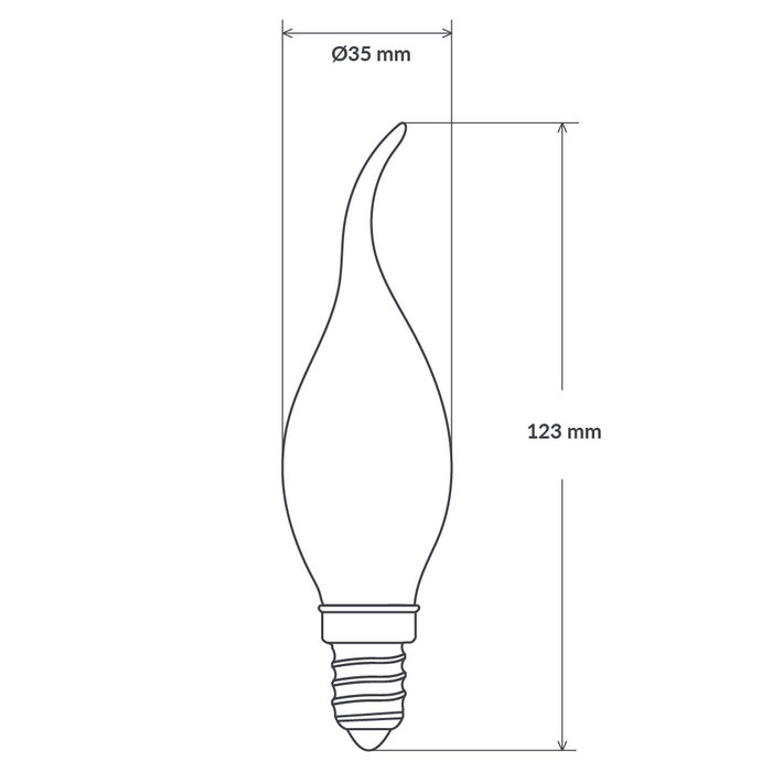 With its distinctive frosted-finished enclosure with a flame-shaped tip, the 4-watt Frosted Flame Tip Candle LED Filament Light Bulb (E14/Small Edison Screw) is an elegant lighting solution that combines the aesthetic appeal of the classic light bulb with 21st LED lighting technology.
