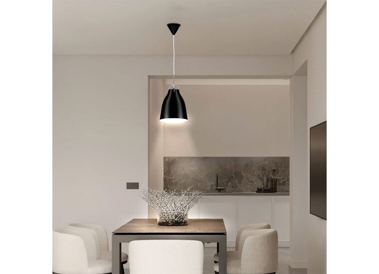 This cosmopolitan pendant series in a high gloss finish is a great way to add contrast in a contemporary space.