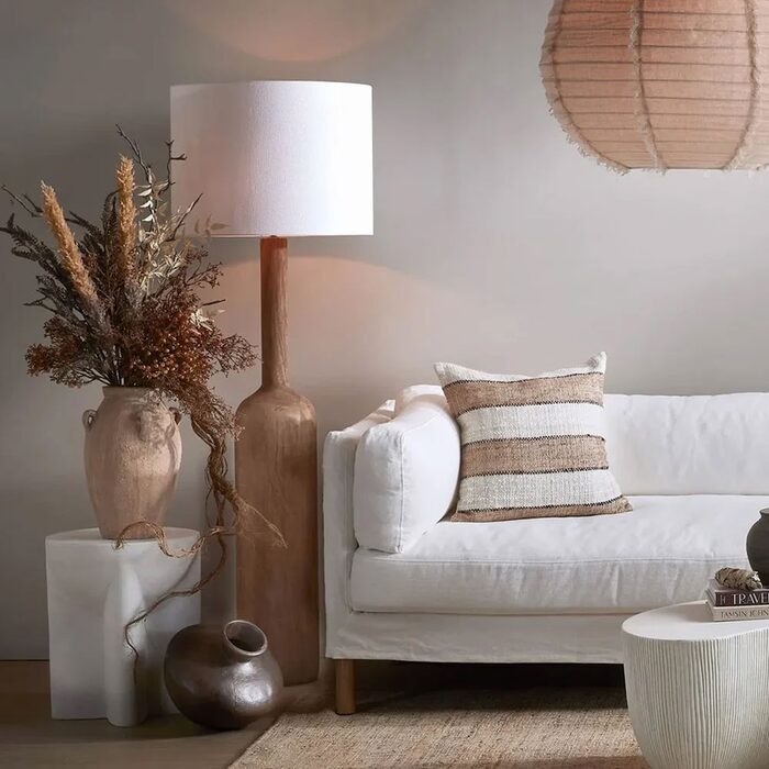 Turned from solid timber, the Flask Floor lamp series brings a grounded statement to any space.