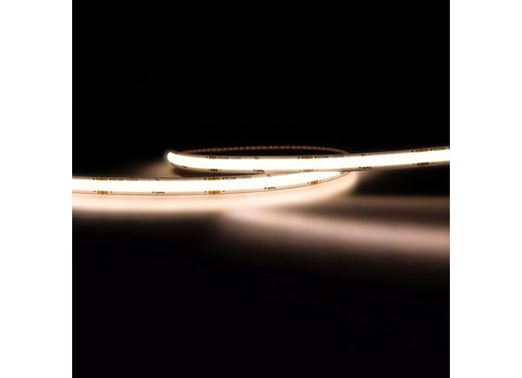 5m roll, COB single colour, high output CRI90, 20W/m, IP20, strip width 10mm.