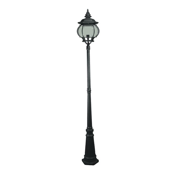 The Flinders outdoor post top light features clear glass and antique black die-cast aluminium.