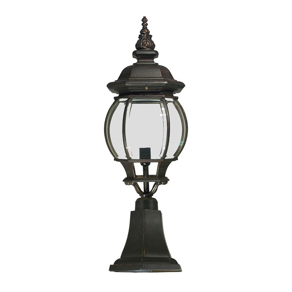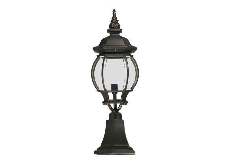 The Flinders Medium Pillar Mount in Antique Bronze is a refined and enduring lighting fixture that effortlessly blends timeless elegance with practical functionality.