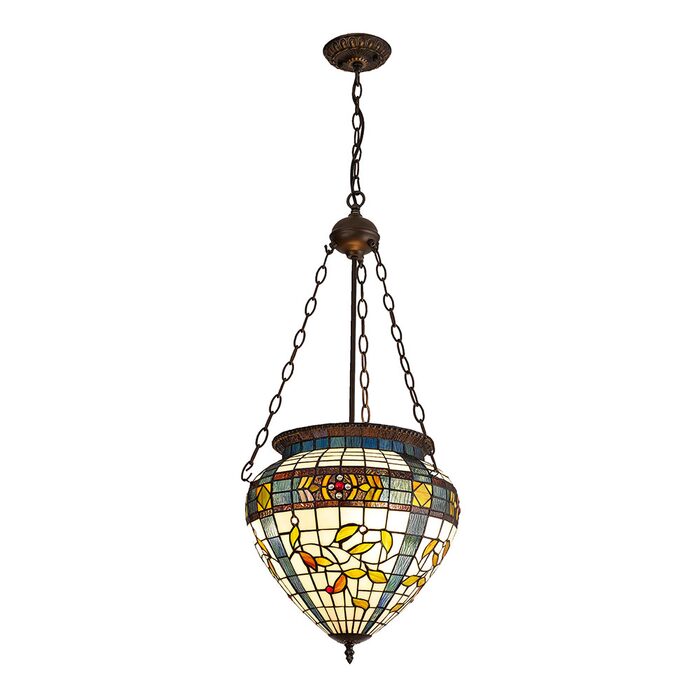 This beautiful pendant features a cone shaped design made from premium stained glass, decorated with floral patterns.