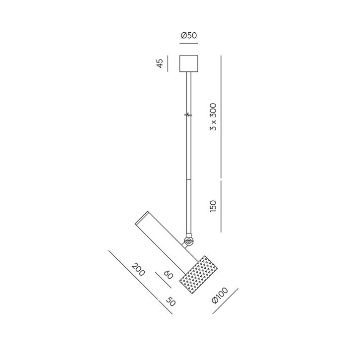 Focus Rod Pendant Light by Pepe Fornas for Aromas Del Campo is horizontal bar light featuring four spotlights.