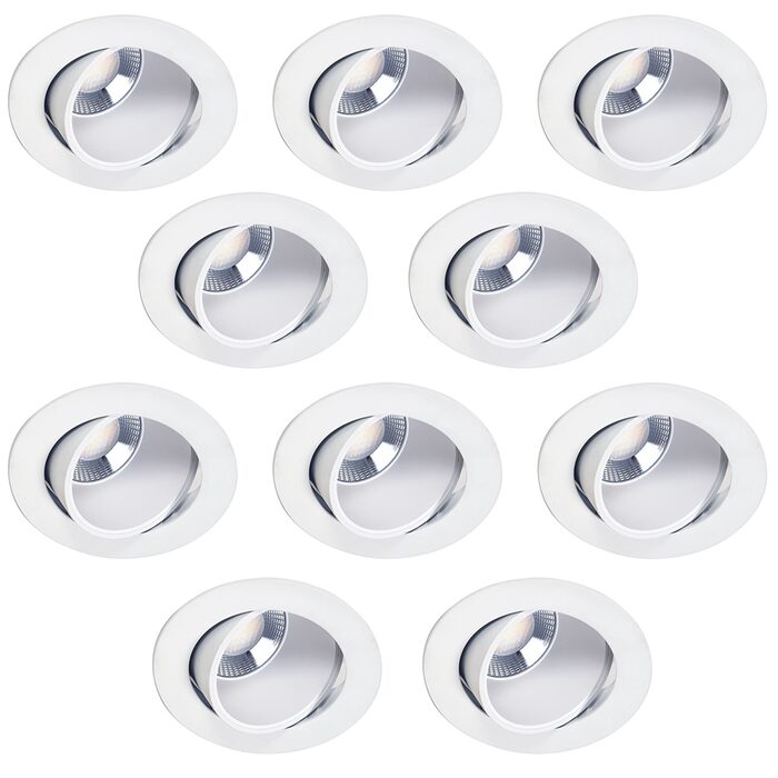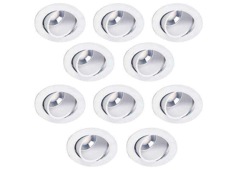 10 Pack of the FOCUS.8 recessedd tri-colour LED gimbal downlight features colour temperature selection.
