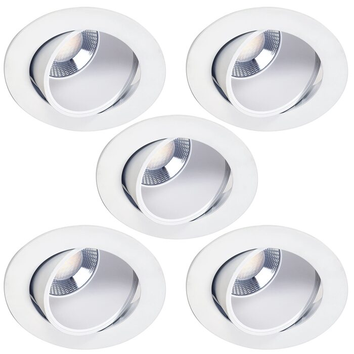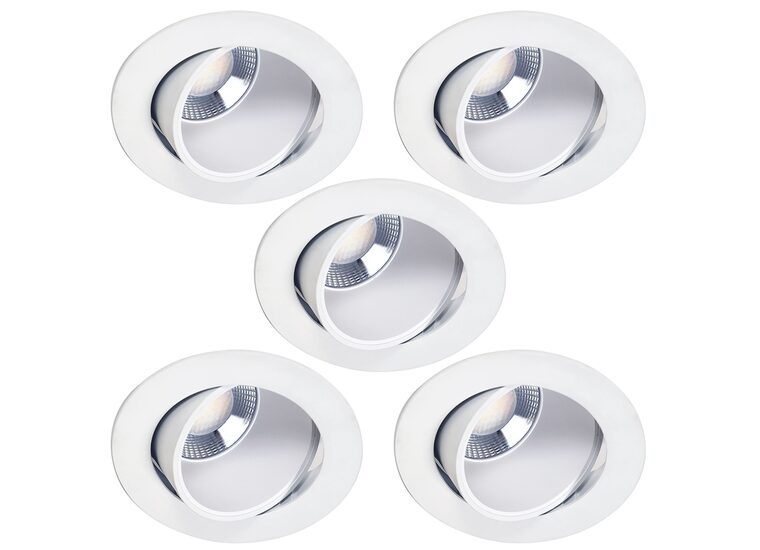 5 Pack of the FOCUS.8 recessedd tri-colour LED gimbal downlight features colour temperature selection.
