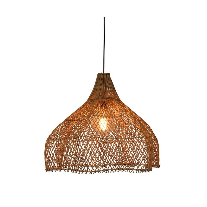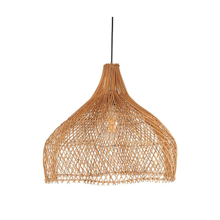The Fortuna shade is suited for use on most E27 pendant suspensions. The light natural rattan looks great with a filament or opal bulb.