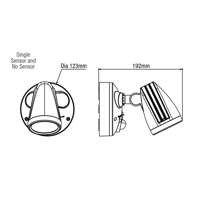 - Durable die cast aluminium with UV stabilised plastic mounting base