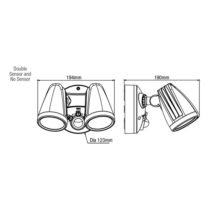 - Durable die cast aluminium with UV stabilised plastic mounting base
