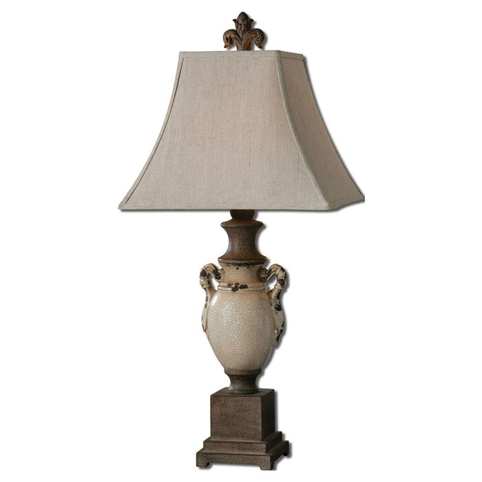 Heavily distressed, antiqued, crackled ivory ceramic with rust bronze details.