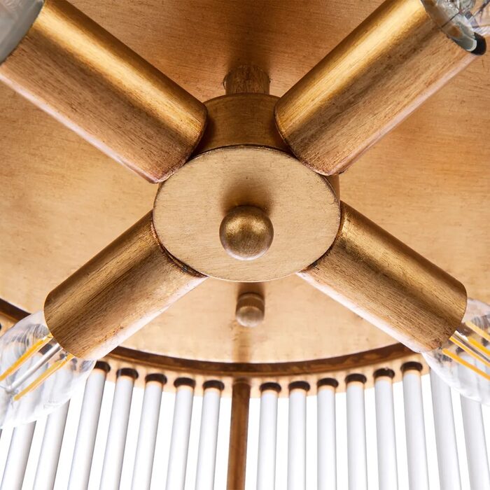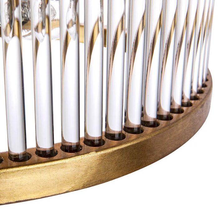 Inspired by Art Deco grandeur, the enchanting Francine flush mount features a stunning antique gold finished metal frame paired with a mesmerising display of cylindrical glass rods to create a stylish drum shade that enlivens the interior space with its sophisticated opulence.