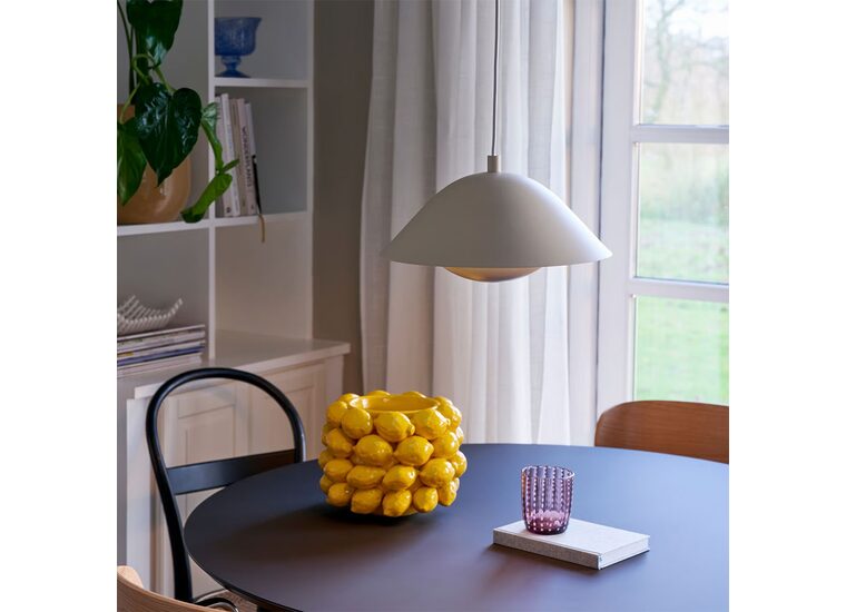The almost oversized top shade embraces the lower and completes the elegant silhouette - while at the same time covering the light source for a comfortable light.